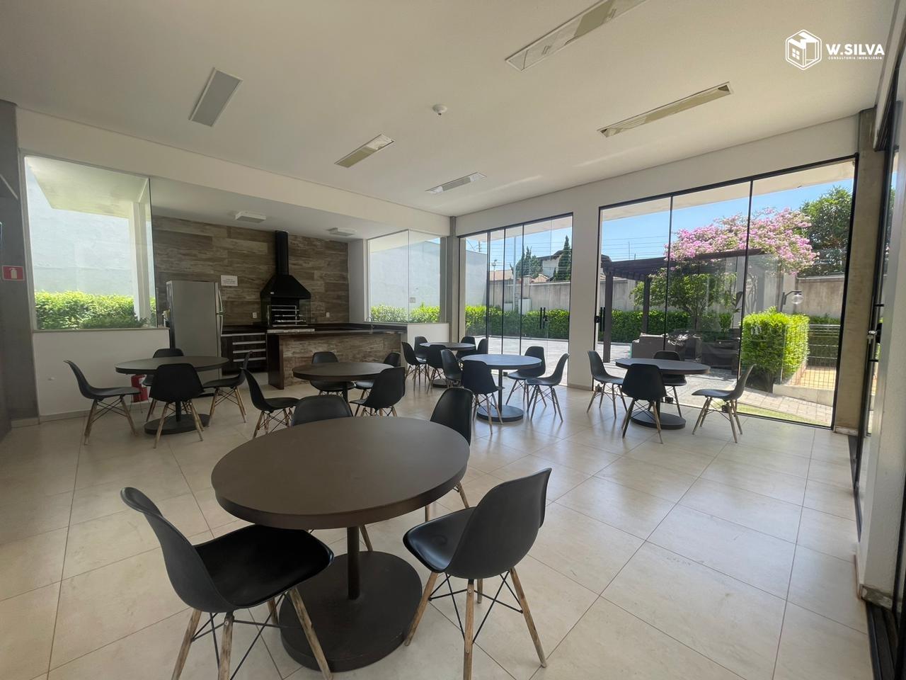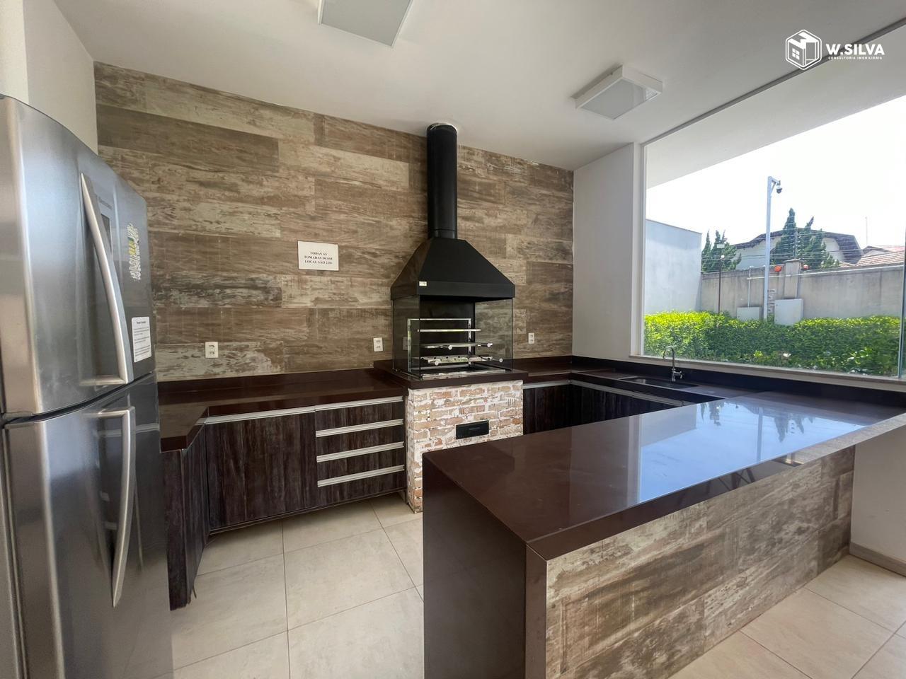 - Cozinha americana em conceito aberto para a sala, equipada com cooktop, coifa, forno elétrico, micro-ondas todos da marca Panasonic e mesa para refeições, proporcionando praticidade e funcionalidade na rotina diária.